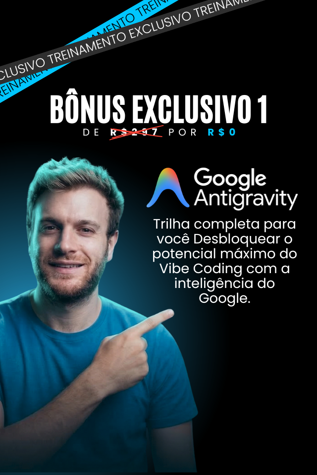 Do zero ao deploy do seu primeiro projeto, você vai entender os bastidores dessa IA para transformar ideias complexas em aplicações funcionais sem esforço manual.Foque na estratégia do seu negócio e deixe a inteligência do Google Antigravity orquestrar o código por você.